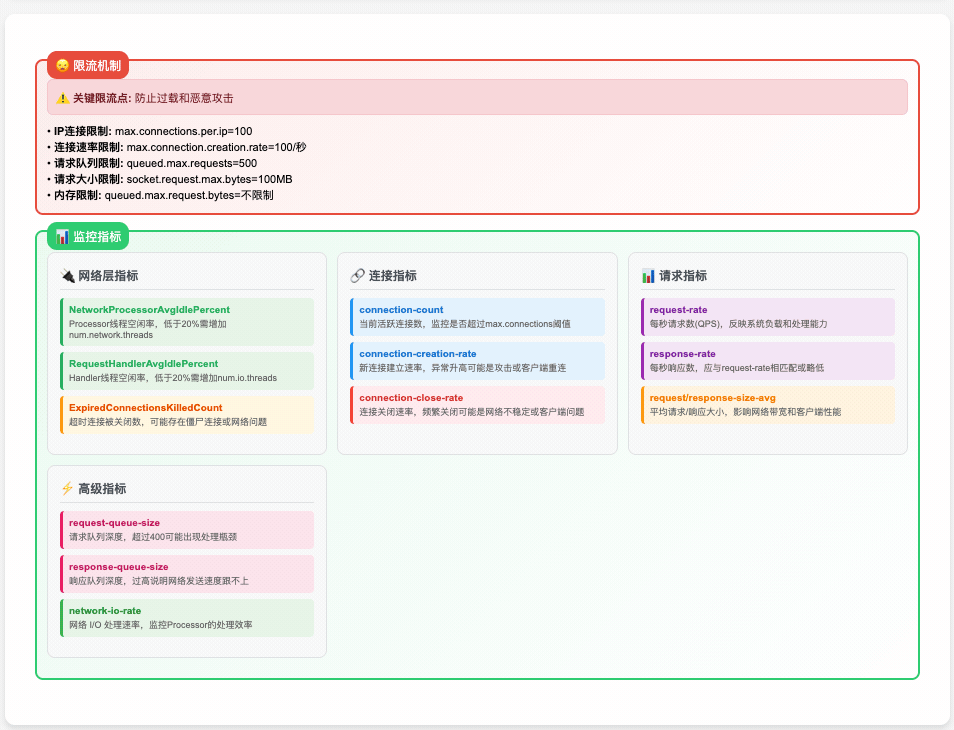- 多级背压:连接配额 → I/O流控 → 队列大小 → 内存控制,全链路保护